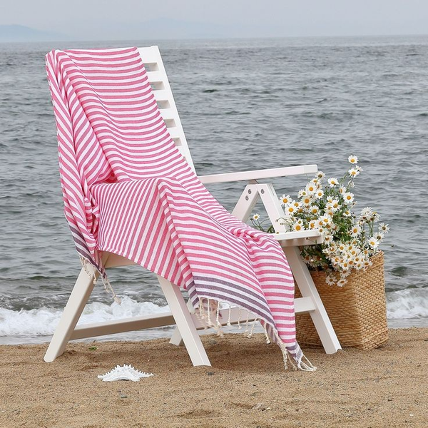 حوله دستباف ساحلی ریسما طرح راه راه با رنگ بندی صورتی - شماره 52/01