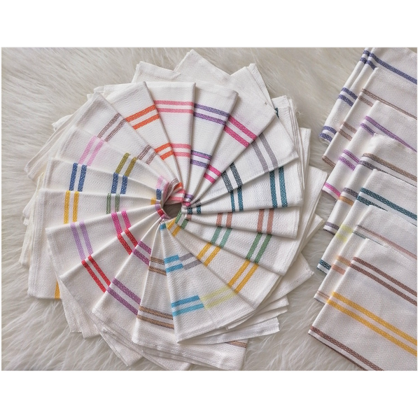 دستمال آشپزخانه دستباف ریسما زمینه سفید با خطوط رنگی در انواع رنگ بن...