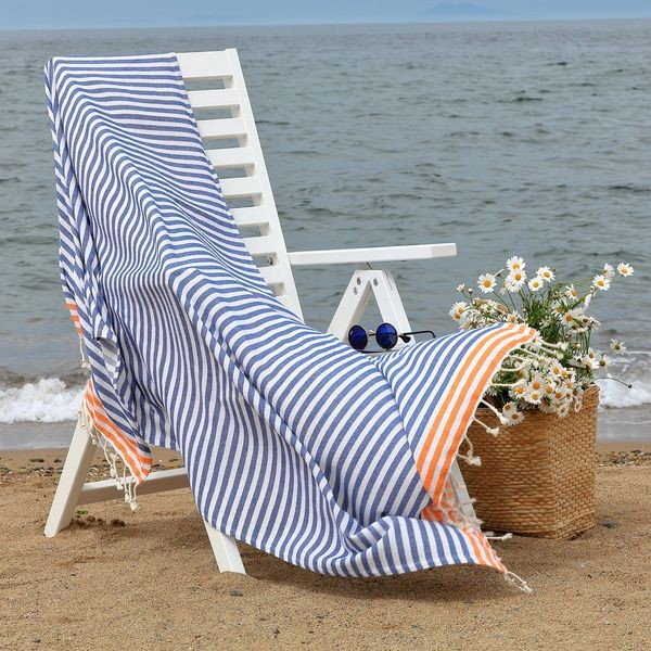 حوله دستباف ساحلی ریسما طرح راه راه با رنگ بندی آبی - شماره 52/02